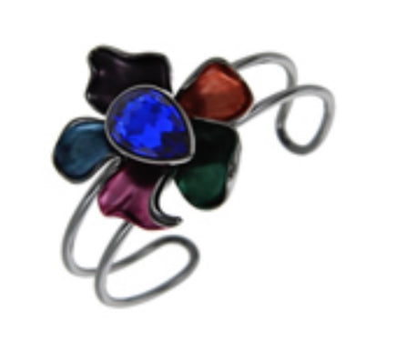 Multicolor flower cuff bracelet with stone accent.