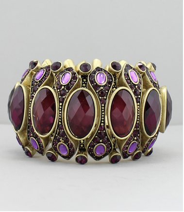 Chunky purple and gold jeweled Victorian stretch bracelet.