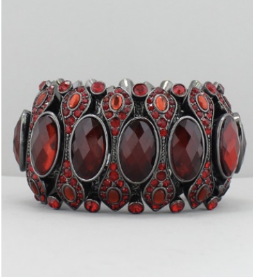 Chunky red and hematite jeweled Victorian stretch bracelet.