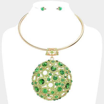 Chunky Green Stone Statement Necklace Set