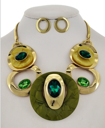 Green and Gold Circle Linked Oval Necklace Set