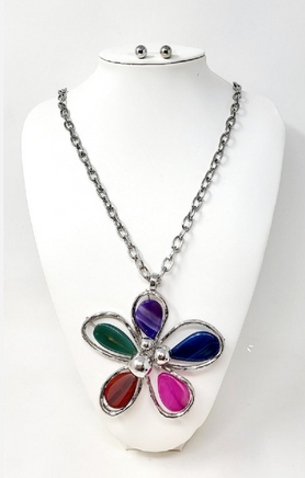 Multi-Color Flower Pendant Long Necklace Set