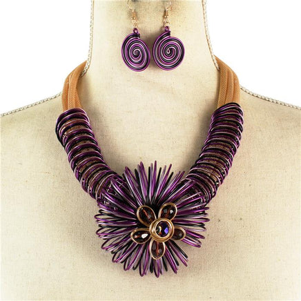 - Alternating Purple, Black, and Lavender Metal Wire with Large Swirled Coil Round Wire Flower Center Detail