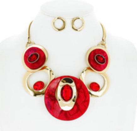 Red and Gold Circle Necklace Set