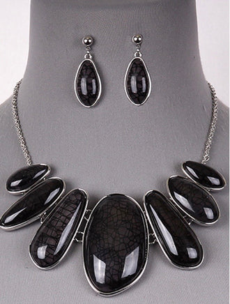 Black Marble Oval Necklace Set