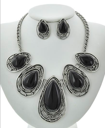 - ANTIQUE SILVER BLACK STONE NECKLACE SET