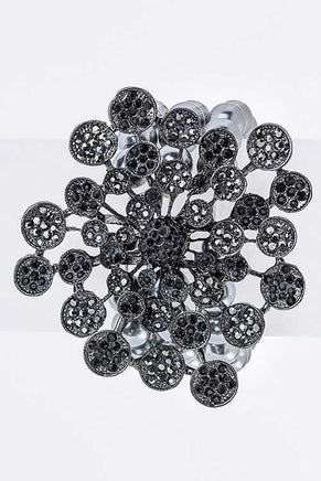 - Black Stone and Silver Pearl Flower Stretch Bracelet: Approx. 3.25"W x 3.25"L