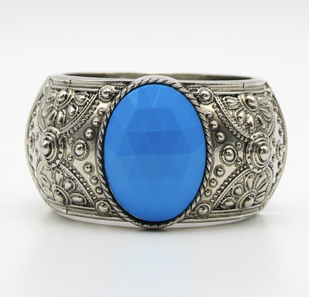 Turquoise hinge boho bangle bracelet with large resin stone.