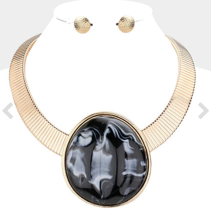Gold and Black Marble Pendant Necklace Set