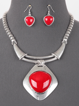 Red Diamond Shape Pendant Necklace Set