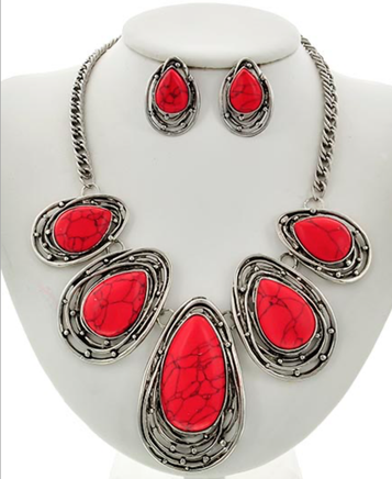 - ANTIQUE SILVER CORAL STONE NECKLACE SET